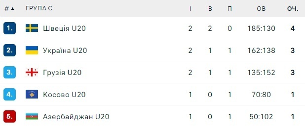 Турнирное положение в группе С Евробаскета-2023 U-20