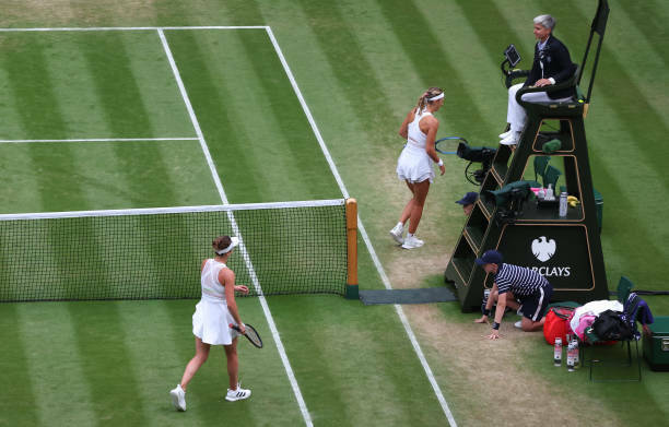 Большинство зрителей на трибунах решило, что это Азаренко проигнорировала свою соперницу, и тут же освистало ее. Эта тема является новой для этого года, поскольку в прошлом году Уимблдон пошел против политики остального теннисного мира и запретил участие российских и белорусских спортсменов. В ответ на это ATP и WTA оштрафовали Ассоциацию лаун-тенниса (LTA) и лишили турнир рейтинговых очков. В текущем году Уимблдон отменил эту политику, однако российские и белорусские игроки выступают в нейтральном статусе, а флаги этих двух стран запрещены на турнире.