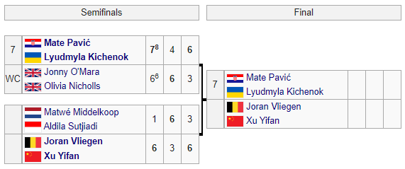 Людмила Киченок (Украина) / Мате Павич (Хорватия) – Джонни О'Мара (Великобритания) / Оливия Николс (Великобритания) – 7:6 (8:6), 4:6, 6:3