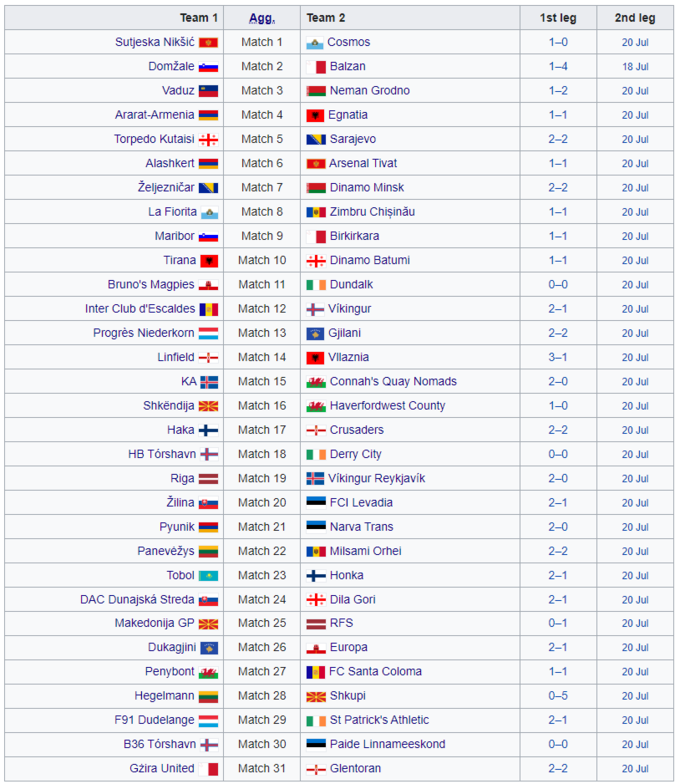 Ниже приведены результаты игр 1-го раунда квалификации (Q1) Лиги конференций. В них сыграли немало украинцев.
