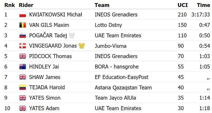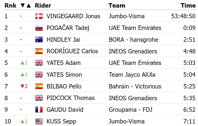 Тадей Погачар сумел приблизиться к Йонасу Вингегору в общем зачете, и теперь уступает желтой майке лишь 9 секунд.
