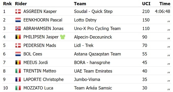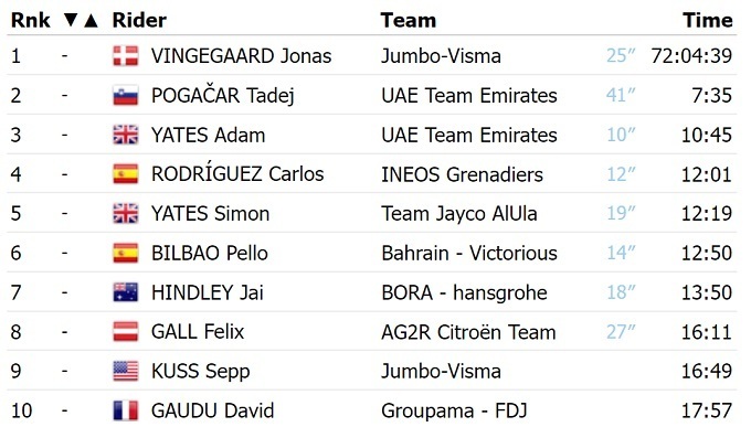 Желтую майку лидера сохранил датчанин Йонас Вингегор из «Jumbo Visma».