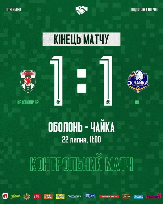 Оболонь в заключительном спарринге лета сыграла вничью с Чайкой