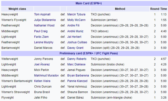 Аспиналл нокаутировал Тыбуру в первом раунде главного боя UFC