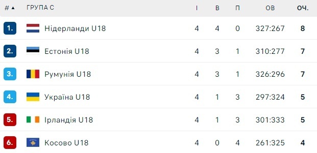 В турнирной таблице группы С сборная Украины U-18 занимает 4-е место, имея в активе 1 победу при трех поражениях. В предыдущем матче украинцы проиграли команде Эстонии со счетом 77:89.