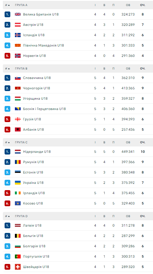 Сине-желтые заняли 4-е место в турнирной таблице группы ЧЕ-2023