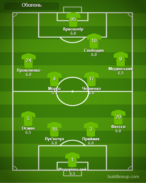 Замены «Оболонь»: Косовский - 6.0, Тарануха - 5.5, Чернов - 6.5, Суханов - 6.5.