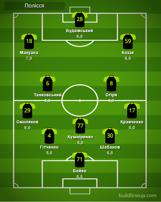 «Полесье»: Бойко – Смоляков, Гитченко, Кушниренко, Шабанов, Кравченко – Танковский (Крушинский, 84), Огиря – Макуана (Янаков, 73), Будковский, Козак (Шастал, 72).
