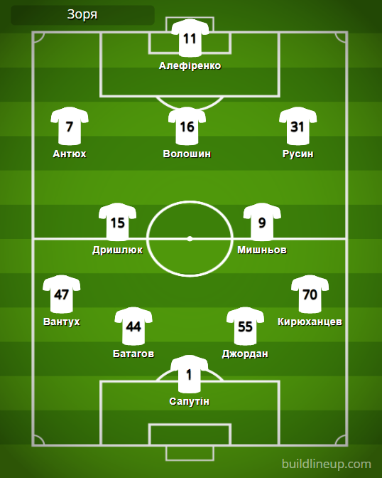 «Заря»: Сапутин – Вантух, Батагов, Джордан, Кирюханцев (Снурницын, 77) – Дришлюк, Мишнев – Антюх (Нагнойный, 78), Волошин (Яцик, 59), Русин – Алефиренко (Бугай, 71).