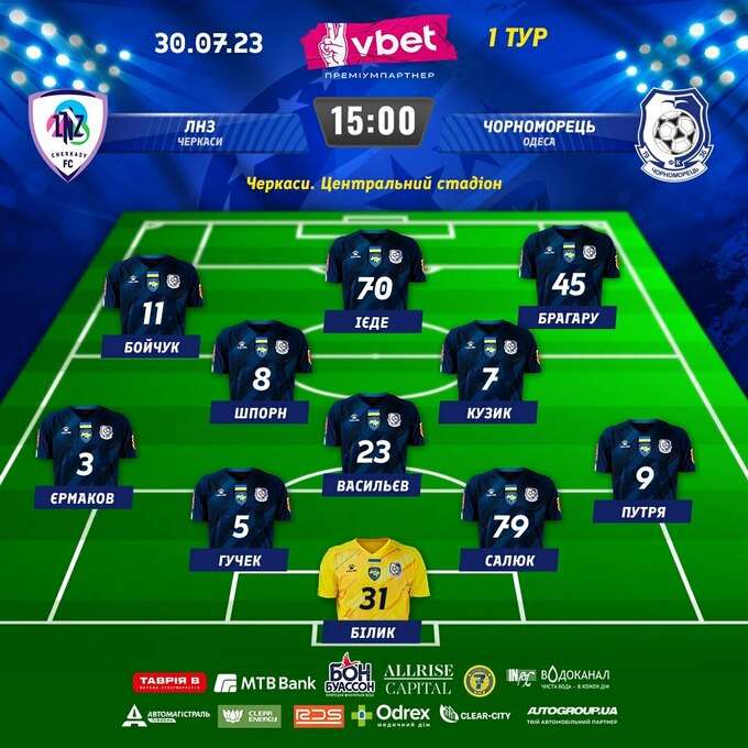 В 15:00 на Центральном стадионе города Черкассы начнется матч 1-го тура Украинской Премьер-лиги, в котором отношения выяснят местный клуб «ЛНЗ» и одесский «Черноморец».