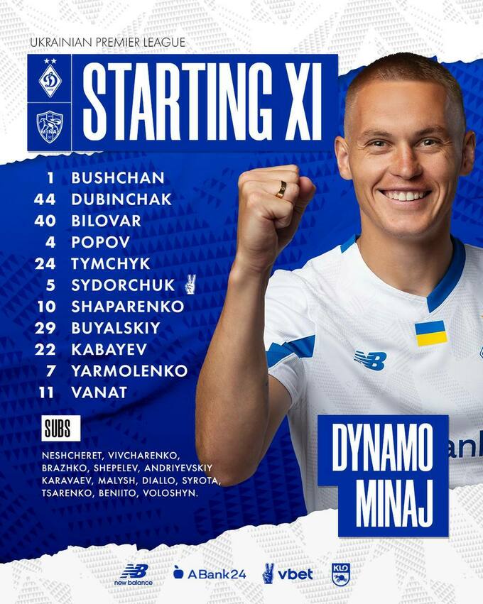 В 17:00 по киевскому времени на поле киевского стадиона «Динамо» имени Валерия Лобановского начнется поединок 1-го тура чемпионата Украины-2023/2024 среди клубов УПЛ между «Динамо» и «Минаем».