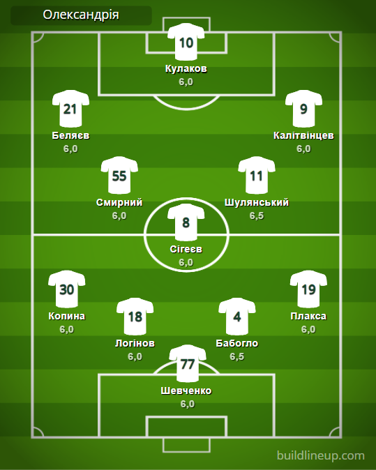 «Александрия»: Шевченко – Копина, Логинов, Бабогло, Плакса (Калюжный, 68) – Смирный (Савченко, 57), Сигеев, Шулянский (Скорко, 81) – Беляев (Авагимян, 58), Кулаков (Андрейчук, 67), Калитвинцев.