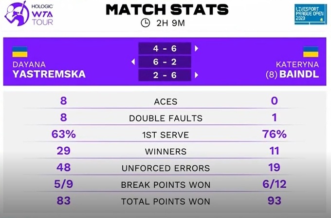 Катерина Байндл (Украина) – Даяна Ястремская (Украина) – 6:4, 2:6, 6:2