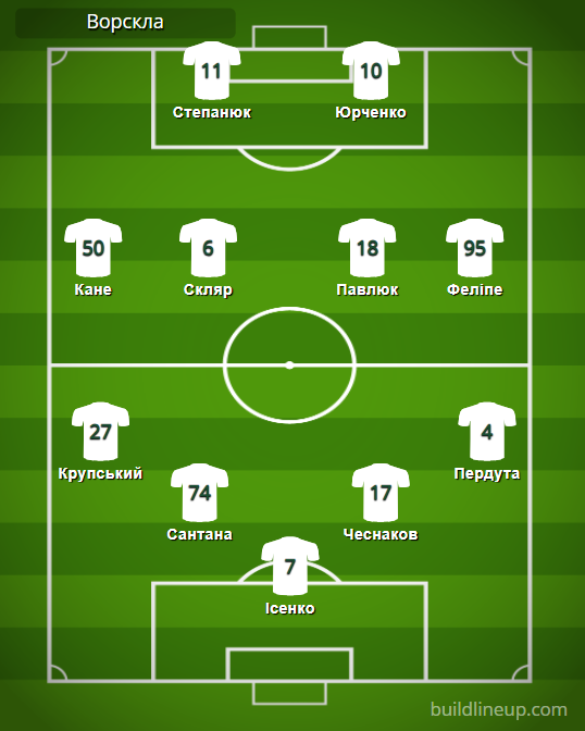 «Ворскла»: Исенко – Крупский (Нестеренко, 56), Сантана, Чеснаков (Хрипчук, 73), Пердута – Кане, Скляр, Павлюк, Фелипе (Бацула, 35) – Степанюк, Юрченко (Челядин, 73).