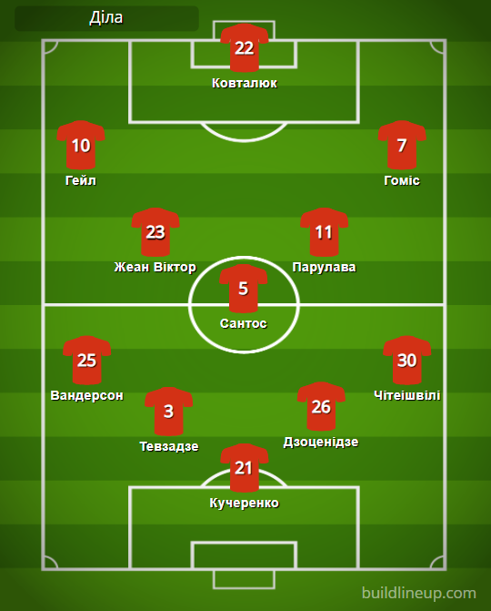 «Дила»: Кучеренко – Вандерсон, Тевзадзе, Дзоценидзе, Читеишвили – Парулава (Сардалишвили, 62), Сантос, Жеан Виктор – Гейл (Гаприндашвили, 90+1), Ковталюк, Гомис (Кухианидзе, 76).