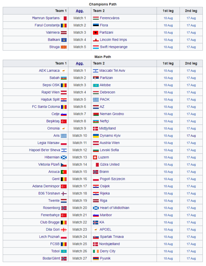 Также был определен соперник киевского «Динамо» в 3-м раунде ЛК. Им стал греческий «Арис», победивший команду «Арарат-Армения» (1:0, первая игра – 1:1). Матчи между «Арисом» и «Динамо» пройдут 10 августа (в Салониках) и 17 августа (на условно домашней арене для киевлян).