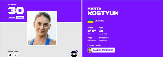 31-летняя бывшая польская теннисистка Сандра Заневска будет работать с украинкой Мартой Костюк, начиная с американской серии турниров. Сандра отмечена коучем Марты на официальном сайте WTA.