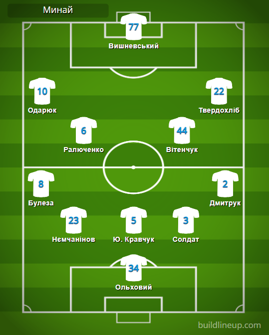 «Минай»: Ольховый – Булеза (Ременяк, 57), Немчанинов, Ю. Кравчук (Панасенко, 46), Солдат, Дмитрук (Рогозинский, 56) – Твердохлеб, Ралюченко, Виттенчук, Одарюк (Голубь, 69) – Вишневский (Гечев, 46).