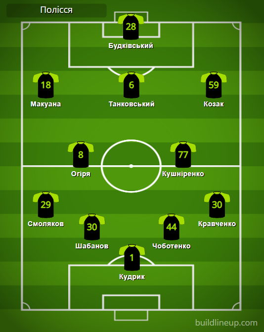 «Полесье»: Кудрик – Смоляков, Шабанов, Чоботенко, Кравченко – Огиря, Кушниренко – Макуана, Танковский (Крушинский, 64), Козак (Назаренко, 46) – Будковский (Янаков, 76).