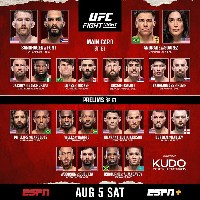 - Главный бой: Кори Сэндхаген (США, 16–4) – Роб Фонт (США, 20–6)