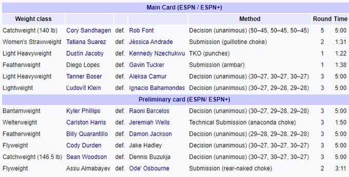 Результаты UFC on ESPN 50