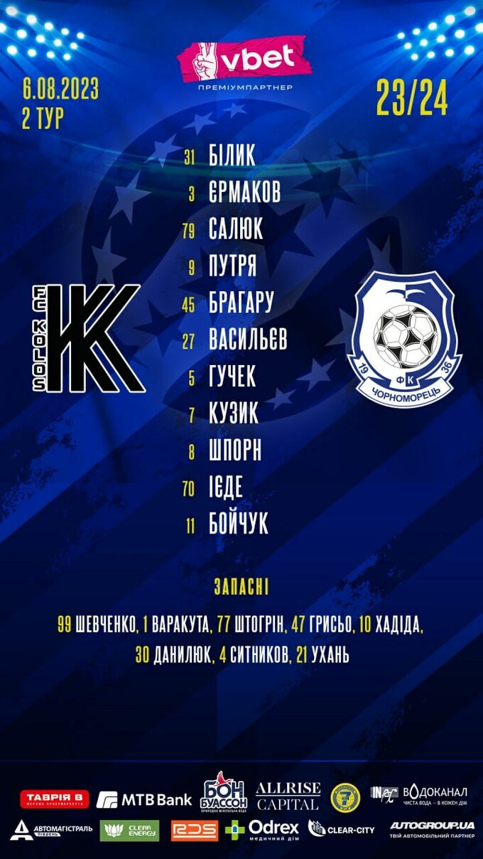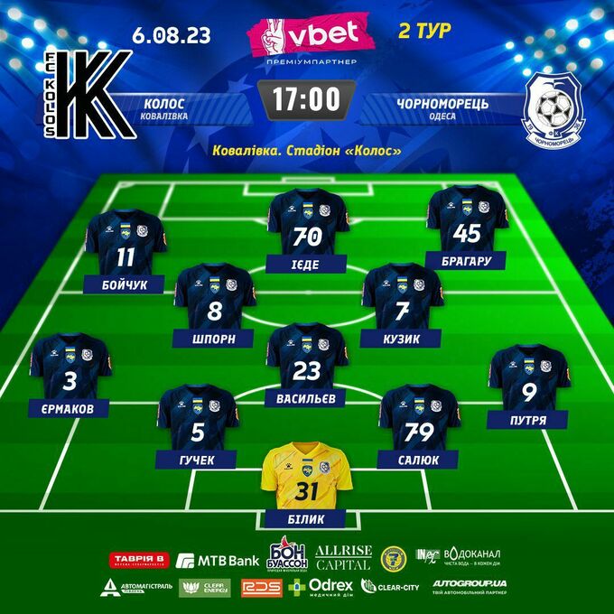 В 17:00 по киевскому времени в Ковалевке на стадионе «Колос» начнется матч 2-го тура Украинской Премьер-лиги сезона-2023/2024 между местным «Колосом» и «Черноморцем».