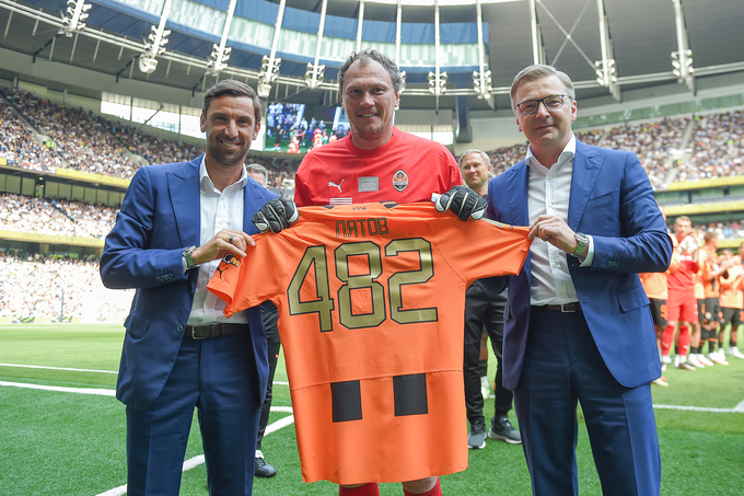 Генеральный и спортивный директора «Шахтера» презентовали Пятову именную футболку с номером 482. Именно столько матчей Андрей сыграл за донецкий клуб.