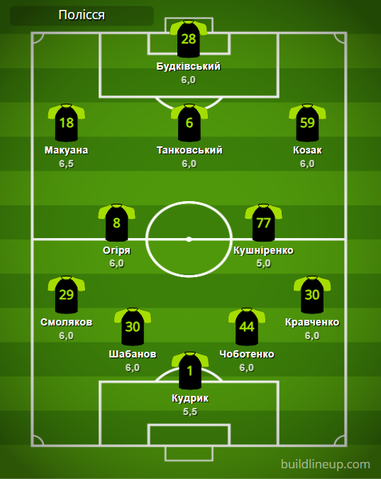 «Полесье»: Кудрик – Смоляков, Шабанов, Чоботенко, Кравченко – Огиря, Кушниренко – Макуана, Танковский (Крушинский, 64), Козак (Назаренко, 46) – Будковский (Янаков, 76).