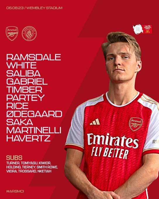«Арсенал»: Рамсдейл, Уайт, Салиба, Габриэл, Тимбер, Парти, Райс, Эдегор, Сака, Мартинелли, Хаверц.