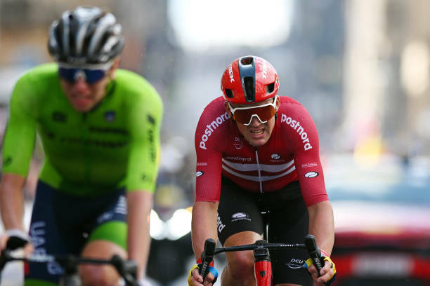 А вот Беттиоль чувствовал себя на уровне грандов, которые в итоге заняли первые четыре места. Понятно, что даже при отличной готовности чемпион Тура Фландрии-2019 в такой компании был бы аутсайдером, и Альберто решил играть по-крупному. За 55 км до финиша он пошел в сольную атаку, и, к удивлению многих, его отпустили.
