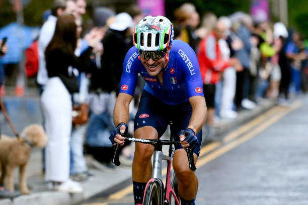 Состав сборной Италии в этом году не впечатлял, особенно с учетом отсутствия Филиппо Ганны – он спустя несколько часов после финиша групповой гонки выиграл индивидуальную гонку преследования на треке. Впрочем, по ходу гонки оказалось, что два медальных шансах у Италии есть – отлично чувствовали себя Маттео Трентин и Альберто Беттиоль. К сожалению, Трентин довольно рано из борьбы самоустранился, упав на узких улочках Глазго.