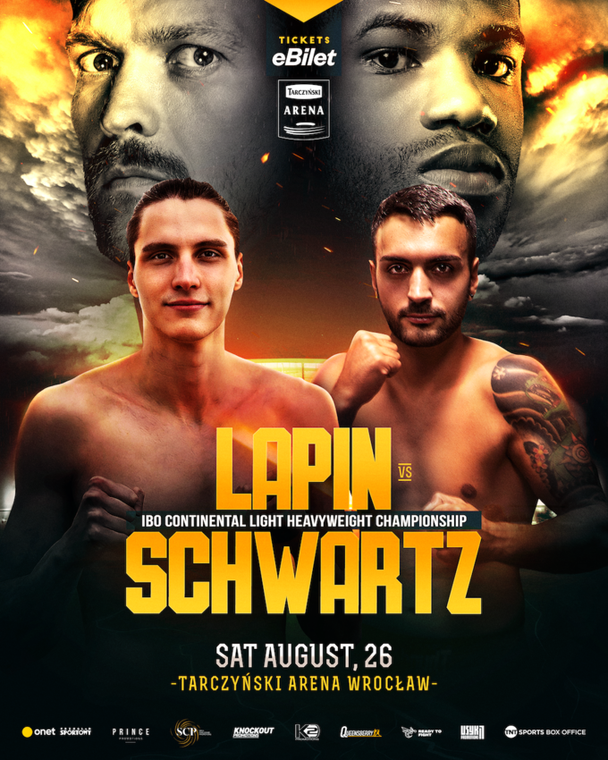 26 августа во Вроцлаве в андеркарде поединка Александр Усик – Дэниел Дюбуа украинец Даниэль Лапин (7-0-0, 1 КО) проведет поединок за титул IBO Continental в полутяжелом весе. Его соперником будет немец Аро Шварц (20-6-1, 13 КО).
