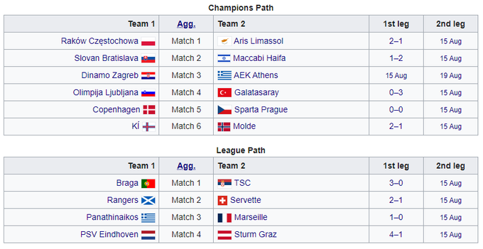 Ответные матчи пройдут 15 августа, победители выйдут в Q4 Лиги чемпионов