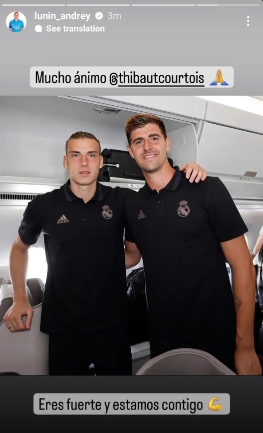 «Наилучшие пожелания Тибо Куртуа. Ты сильный, и мы все с тобой», – написал Лунин в адрес Куртуа в своем инстаграме.