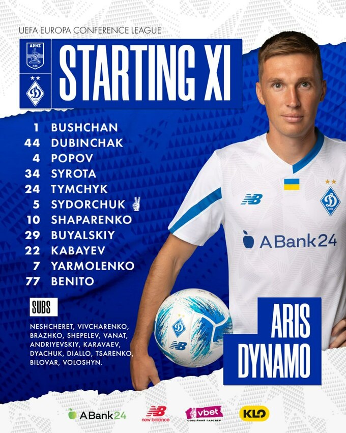 Сегодня, 10 августа «Динамо» Киев в первом матче третьего раунда квалификации Лиги конференций на выезде сыграет с греческим «Арисом» (Салоники). Начало матча – в 21:15 по Киеву. Для «Динамо» это дебютный еврокубковый матч в сезоне 2023/2024.