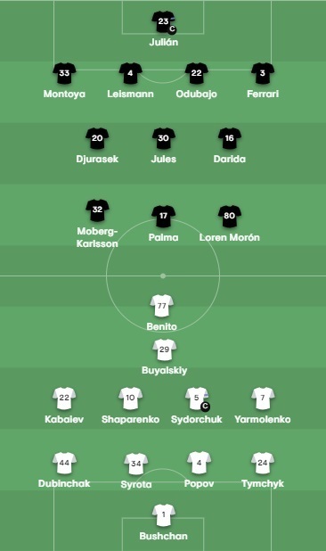 «Динамо» Киев: Бущан, Дубинчак, Сирота, Попов, Тымчик, Кабаев, Шапаренко, Сидорчук, Ярмоленко, Буяльский, Бенито