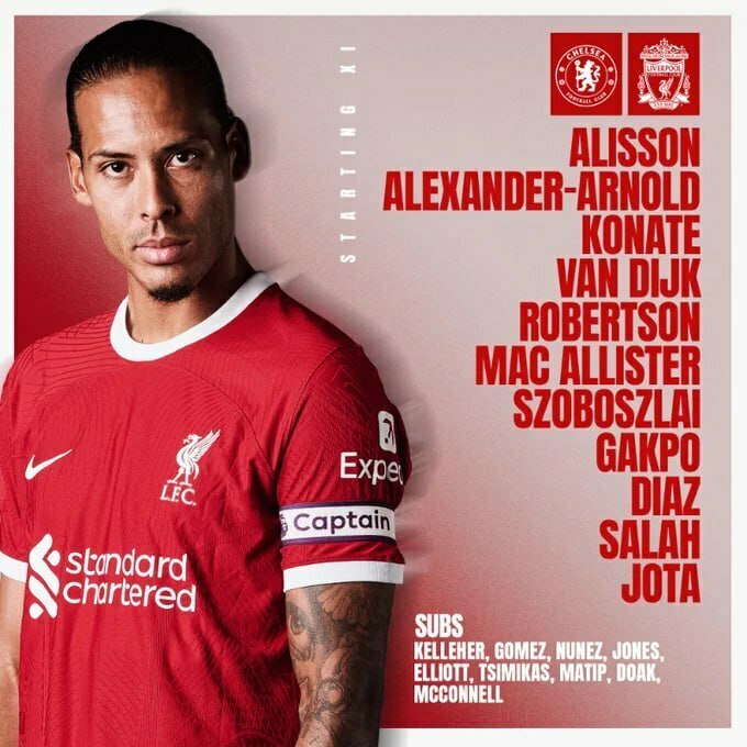 «Ливерпуль»: Алиссон, Александер-Арнольд, Конате, Ван Дейк, Робертсон, Макаллистер, Собослай, Гакпо, Диас, Салах, Жота