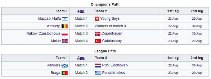 - Рейнджерс (Шотландия) – ПСВ Эйндховен (Нидерланды)