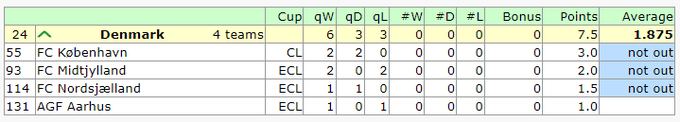 Дания (17-й рейтинг) также неплохо идет в текущем сезоне (1.875), остались три представителя из четырех.