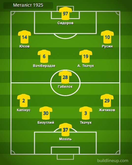 «Металлист 1925»: Мозиль – Капинус, Безуглый, Е. Ткачук, Жичиков – Вачиберадзе (Мартынюк, 89), Габелок, А. Ткачук (Кравченко, 89) – Юсов (Дмитренко, 68), Сидоров, Русин (Чирук, 80).