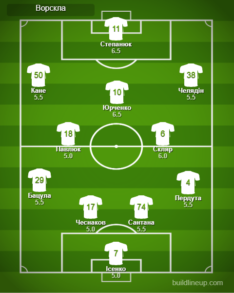 «Ворскла»: Исенко, Пердута, Скляр, Юрченко (Тиагуиньо, 83), Степанюк, Чеснаков, Павлюк, Бацула, Челядин (Нестеренко, 67), Кане, Сантана (Л. Рамирес, 74).