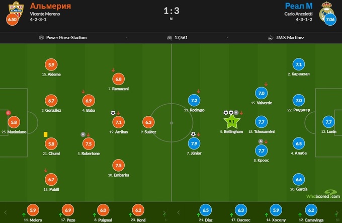 Еще два игрока получили практически идентичные оценки: Орельен Чуамени (7.7) и Тони Кроос (7.69).