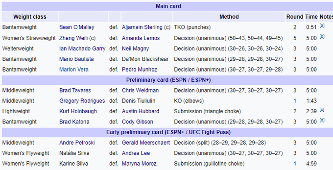 Шон О'Мэлли (США, 16–1, 1 NC) – Алджамейн Стерлинг (США, 23–3) – TKO 2/5