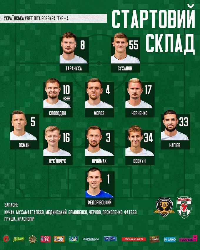Днепр-1 – Оболонь. Известны стартовые составы команд