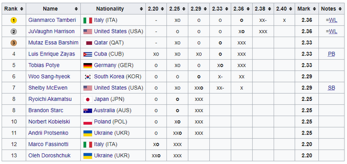 Это первый за 18 лет случай, когда в финале чемпионата мира в прыжках в высоту выступали сразу два украинца.