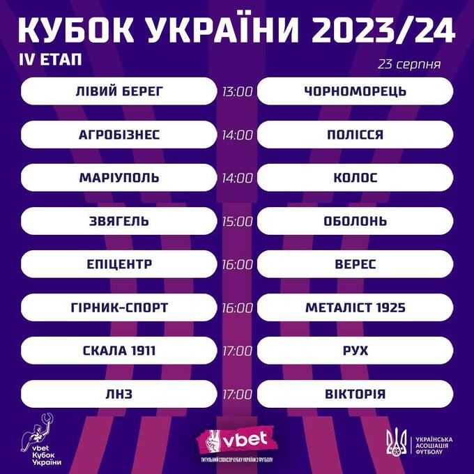 23 августа проходят поединки 4-го предварительного раунда Кубка Украины.