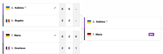 Во втором раунде основы украинка должна была сразится против Татьяны Марии из Германии (№49 WTA), но снялась до матча.