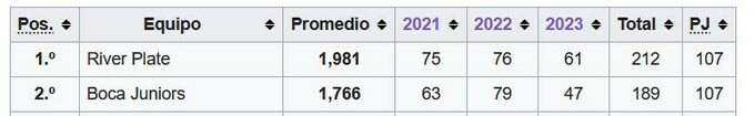 Следующие шесть команд в сводной таблице выходят в Копа Судамерикана — и здесь все понятно, поскольку это единственный способ попасть в этот турнир.