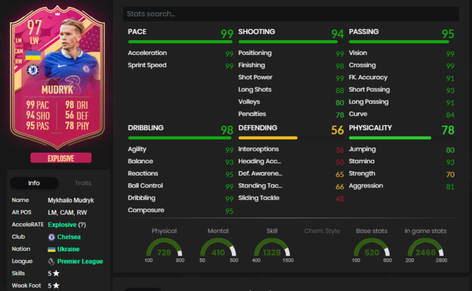 Свою карточку получил и Михаил Мудрик. У новой карты игрока «Челси» рейтинг 97 – это рекорд среди украинских игроков, которые когда-либо были представлены в серии футбольных симуляторов.