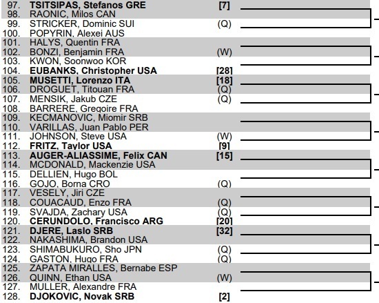 В нижней четверти к Джоковичу отправились Стефанос Циципас, Тэйлор Фритц, Феликс Оже-Альяссим, Кристофер Юбэнкс, Лоренцо Музетти и Франсиско Черундоло. Есть еще несколько интересных персонажей, но каких-либо видимых шансов в матче с главным фаворитом у них не наблюдается.